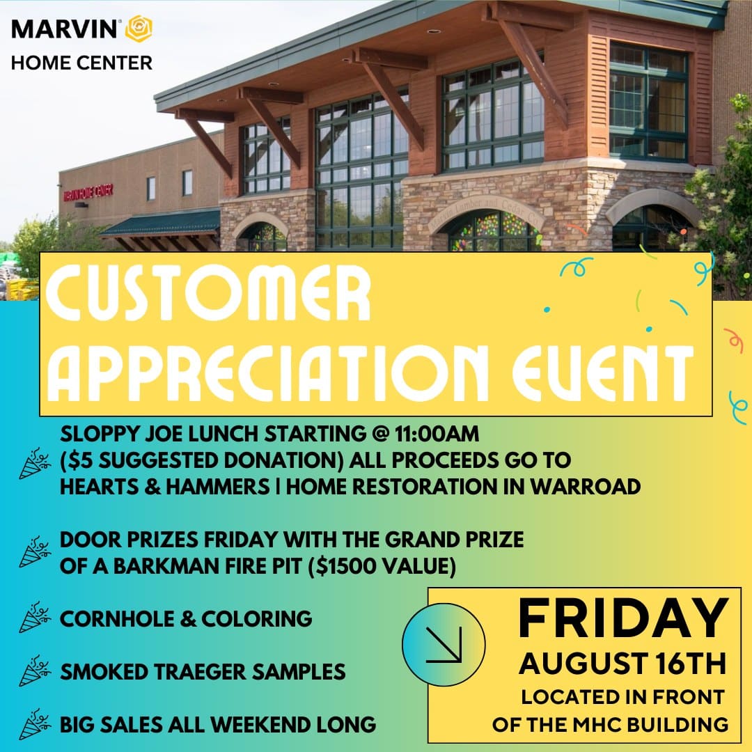 Customer Appreciation Event + Add to Google Calendar + iCal / Outlook export Date Aug 16 2024 Expired! Time 11:00 am - 5:00 pm Cost $ Location Marvin Home Center Category Chamber of Commerce Entertainment Family-Friendly Featured Food Live Here Tourism Visit Here Share this event